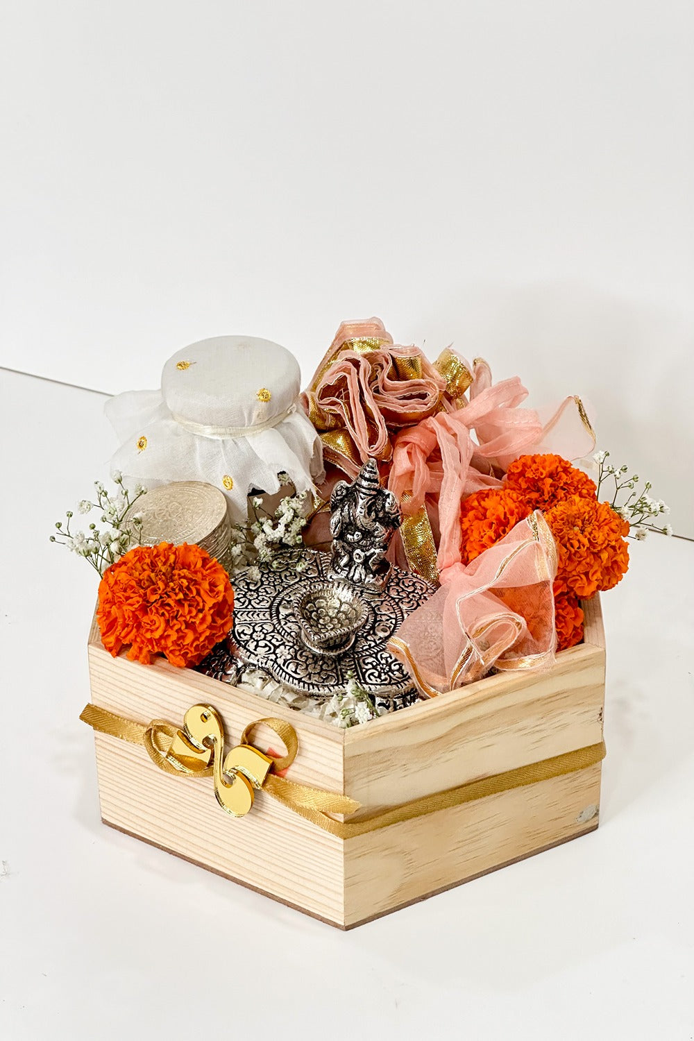 Thoughtfully curated to bring warmth and elegance to your festival. This rustic bamboo box holds...