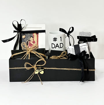 Honour the man who holds it all together with 'Daddy Dearest', a thoughtful collection of treats and essentials - a cozy mug, stylish sun glass cover, refreshing charcoal soap, decadent chocolate barks, a heartwarming photo frame, and nourishing beard oil. Celebrating the hero of the family!