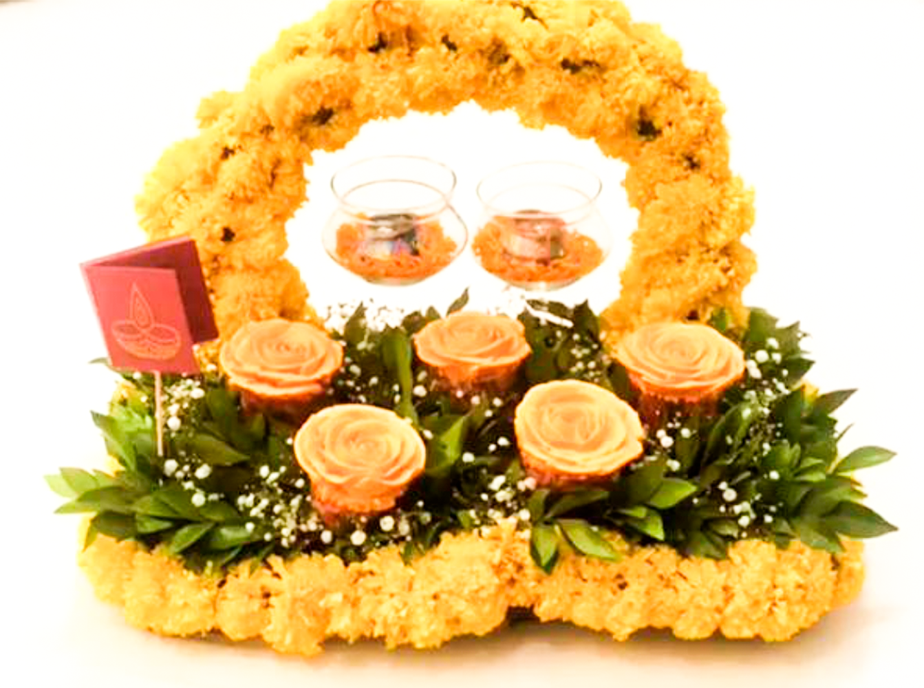 A twist to traditional gifting, our marigold sunrise bouquet turns heads ! With sunrise hues for the festive season, our flower cupcakes and gorgeous genda flower setting makes people jump off their seats !