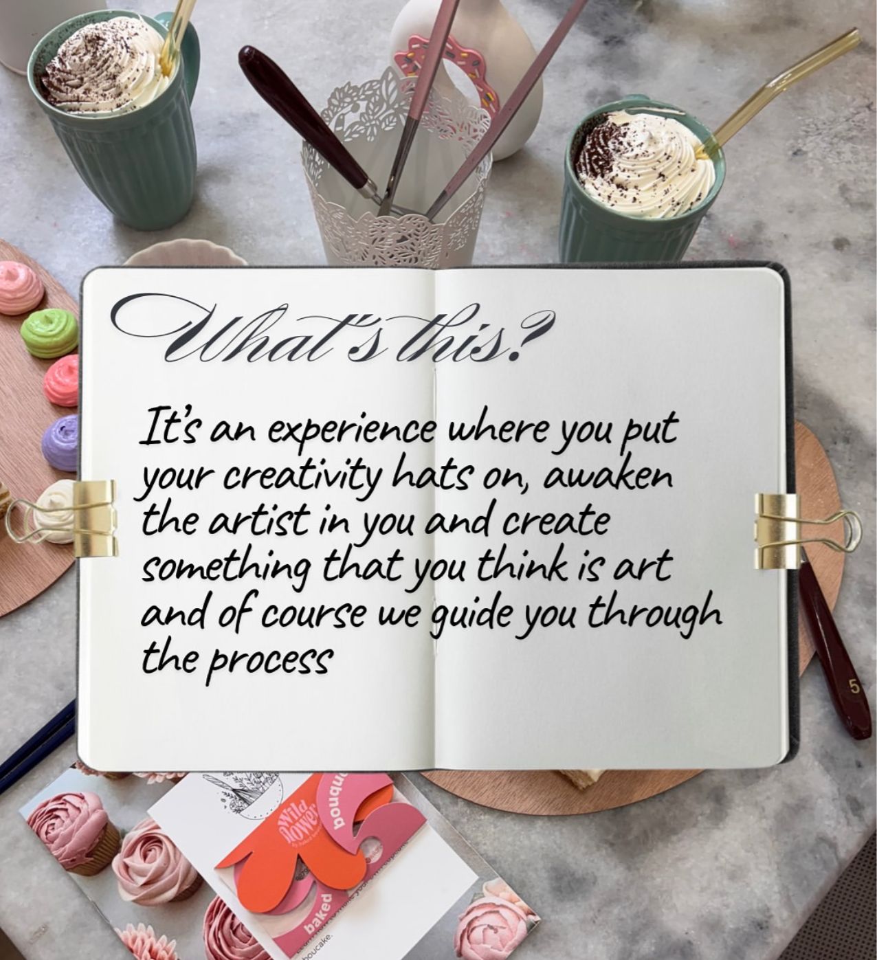 It's an experience where you put your creativity hats on, awaken the artist in you and create something that you think is art and of course we guide you through the process